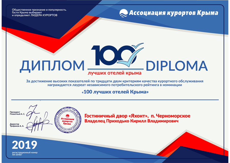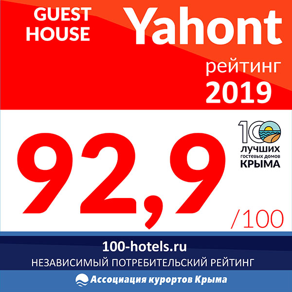 Яхонт – лауреат рейтинга «100 лучших» 2019 в номинации «100 лучших отелей Крыма»