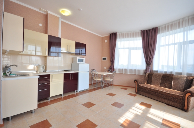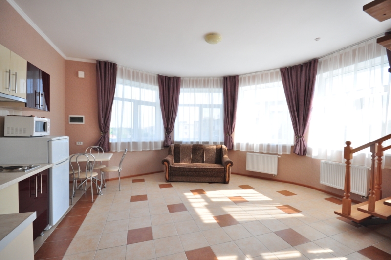 Просторные 2-уровневые апартаменты представляют собой комфортабельный номер, состоящий из кухни и зала на первом этаже, и уютной спальни на втором этаже. Всего в наличии один номер данной категории. Он имеет площадь 60 кв.м.