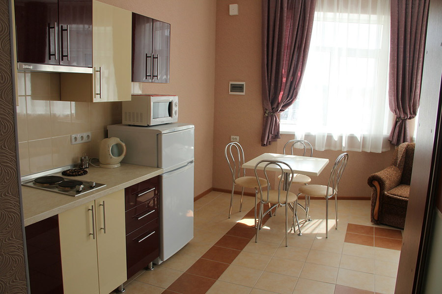 - кухня с электрической плитой, микроволновкой, электрочайником, посудой на 4 человек,